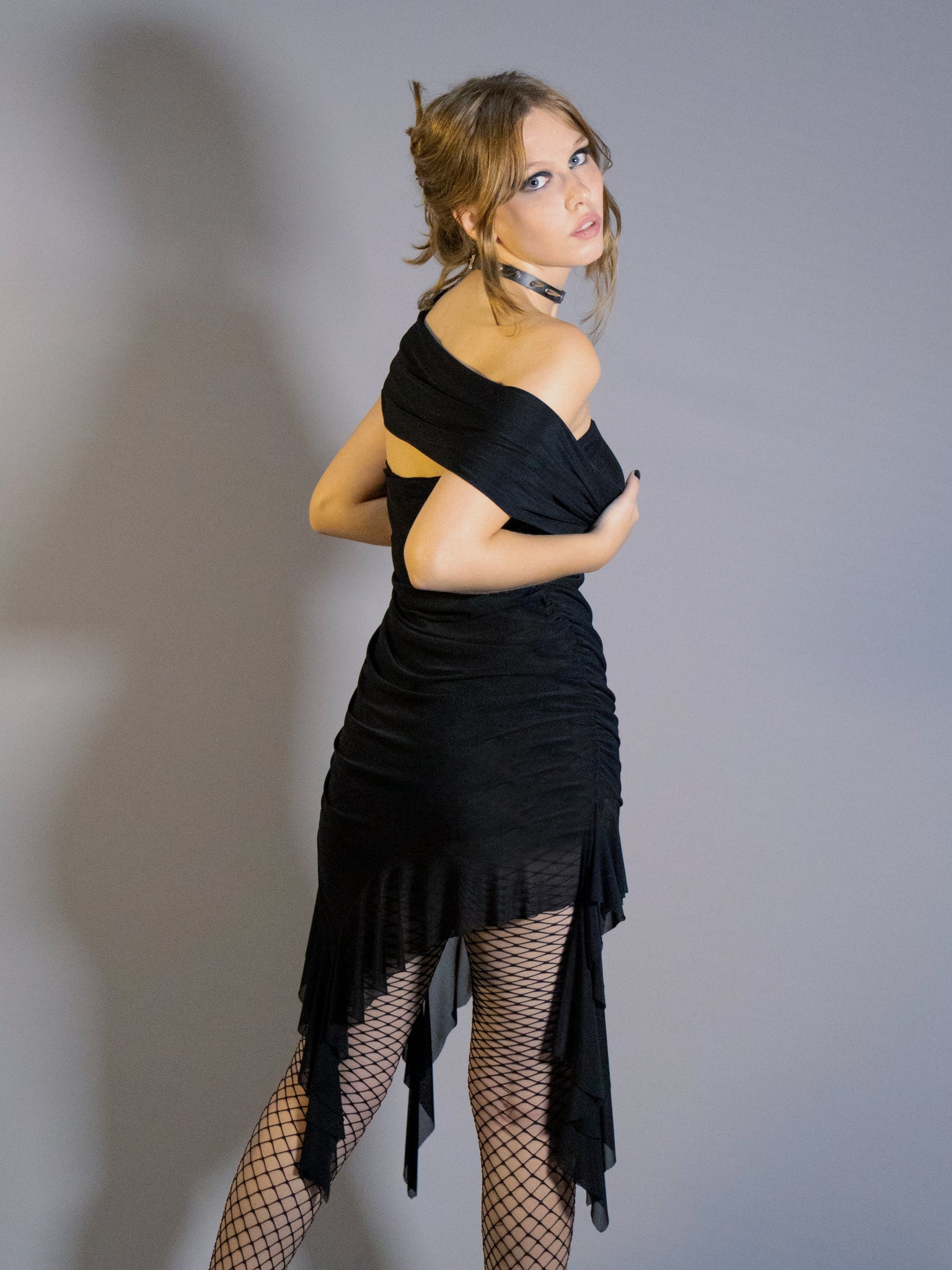 vestido em tule com design assimétrico, perfeito para todas ocasiões. atemporal, moderno e chique.
