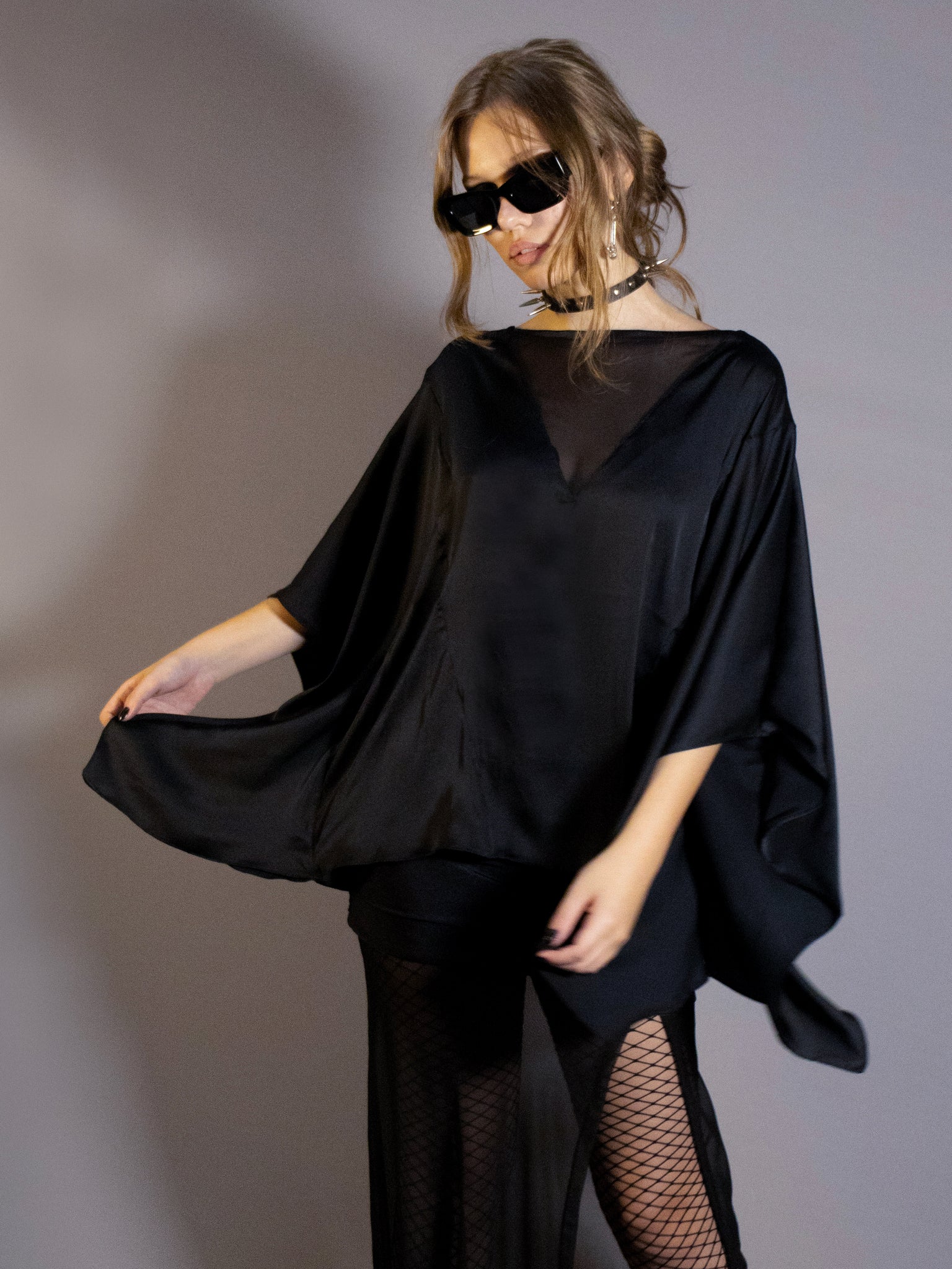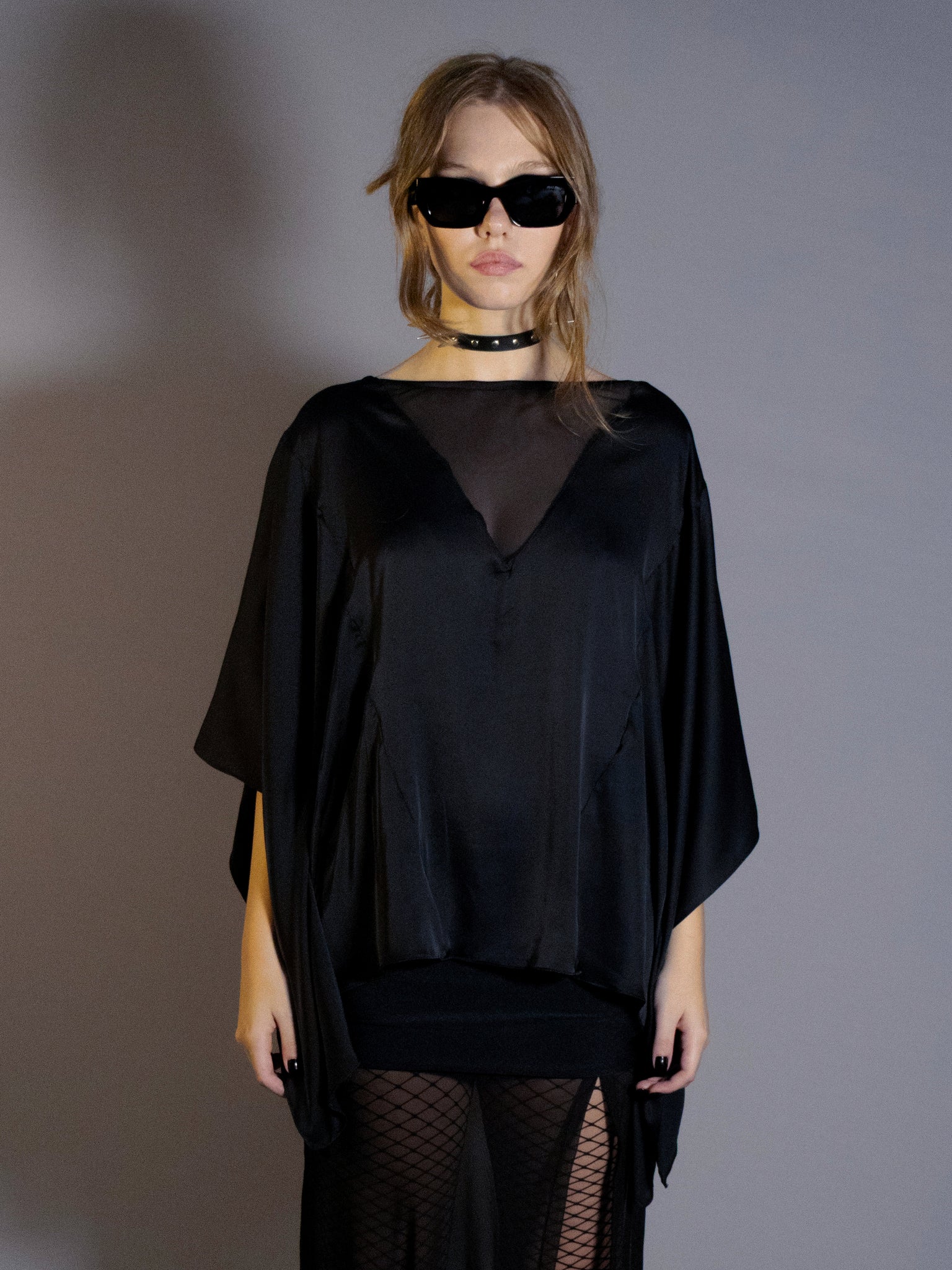fashion top com modelagem "morcego" overized, detalhe no decote V em tule. uma peça coringa atemporal, chique e multi uso.